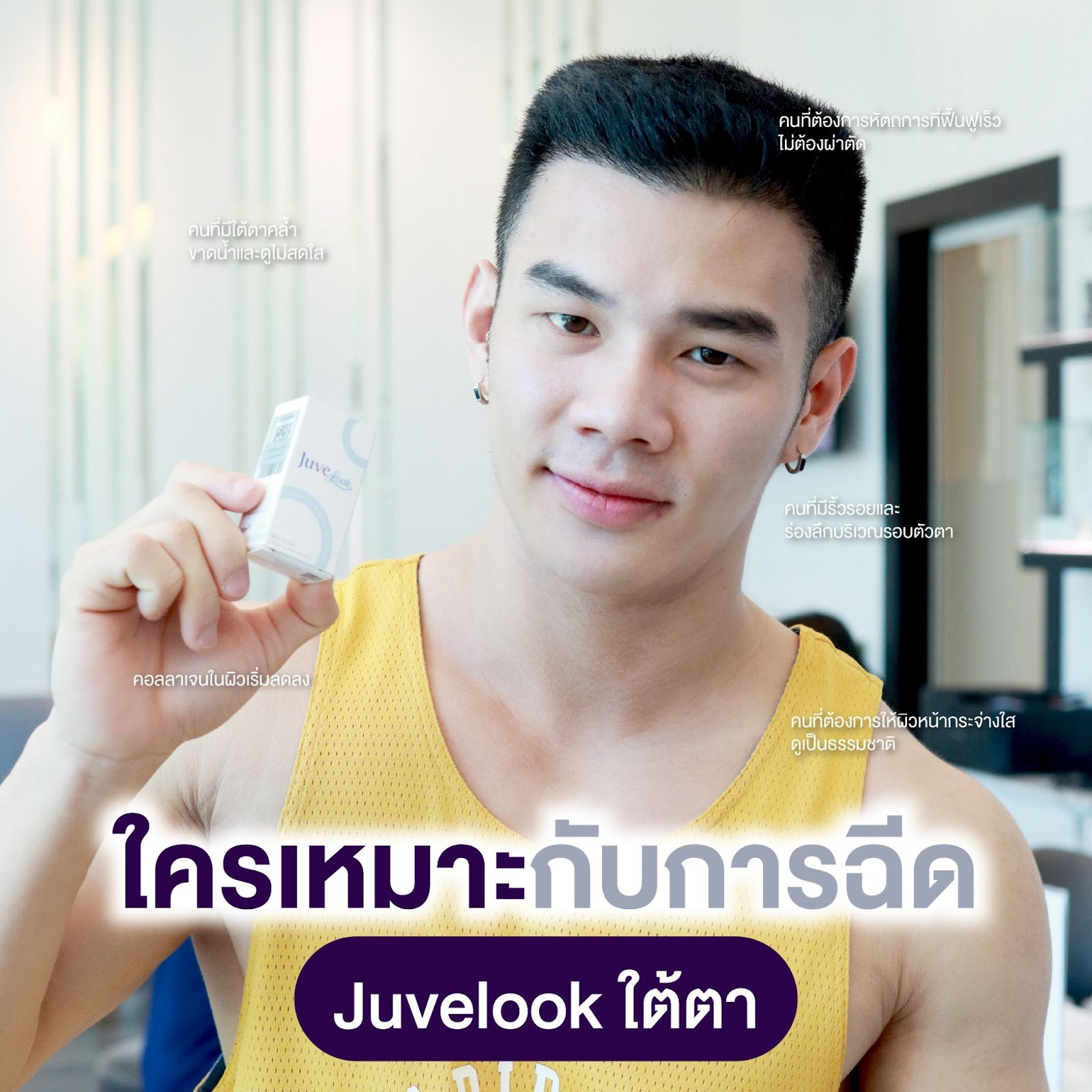 คนที่เลือกฉีด Juvelook ก็เพื่อช่วยลดริ้วรอย เติมร่องน้ำตา ไปจนถึงถุงใต้ตาที่หย่อนอีกด้วย นอกจากนี้ยังสามารถลดปัญหาใต้ตาคล้ำที่เกิดจากภูมิแพ้หรือการพักผ่อนน้อยได้เช่นกัน โดยการฉีดไหมน้ำตัวนี้จะเพิ่มความชุ่มชื้นให้ใบหน้าดูสดใสและสดชื่นมากขึ้นในที่สุด